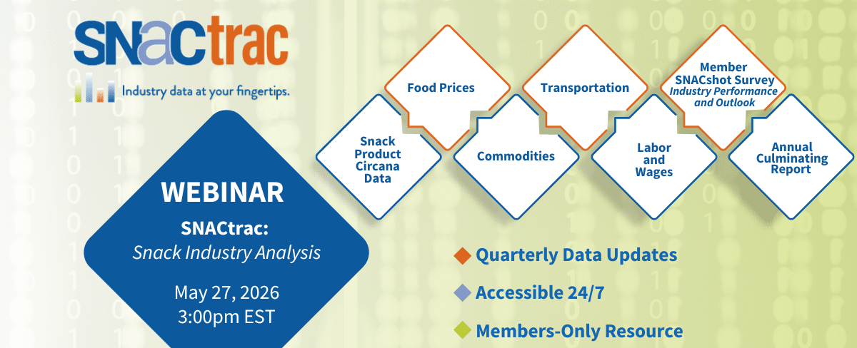 SNACtrac is a member-exclusive data platform that offers quarterly insights into key U.S. economic indicators and snack industry-specific trends.